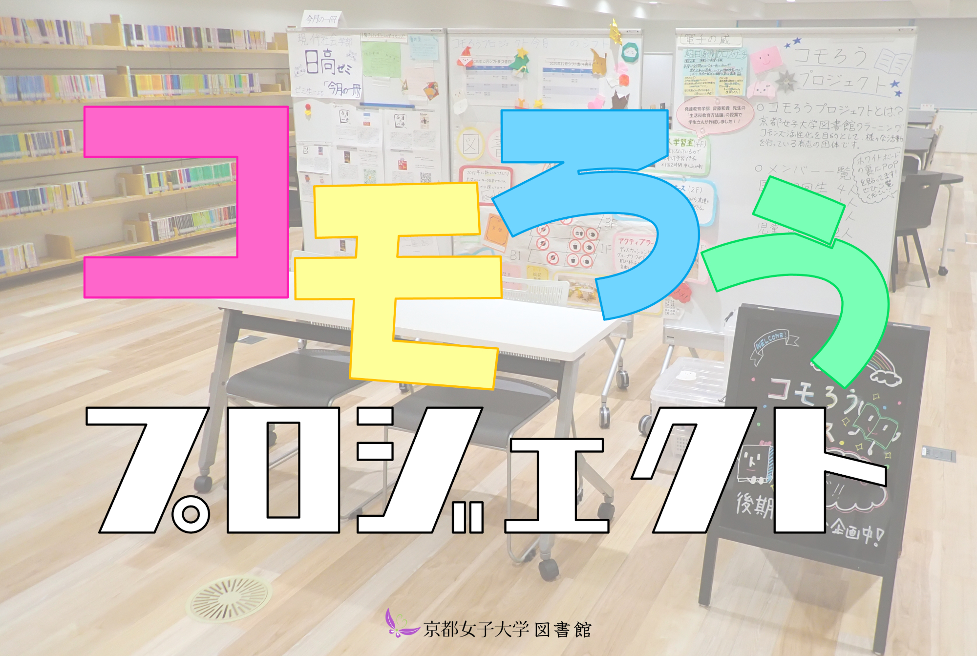 私たちは、京都女子大学図書館のラーニングコモンズ活性化を目指し、 学生主体で図書館1階アクティブラーニングコモンズにて活動中です。